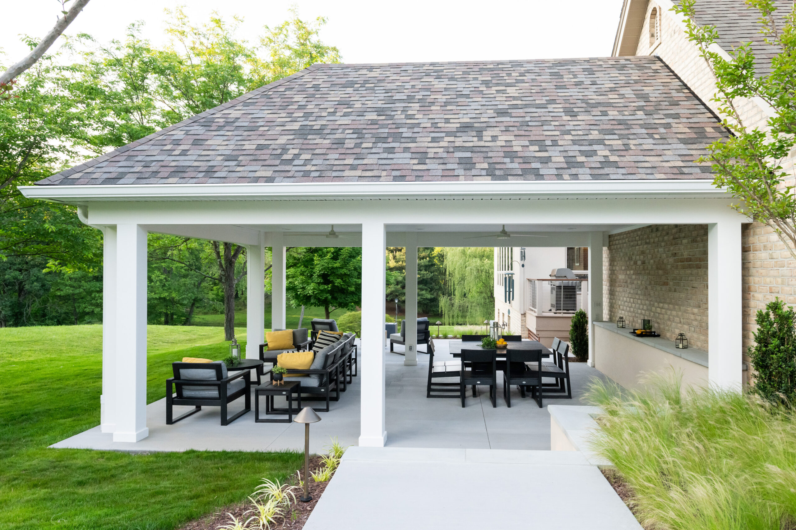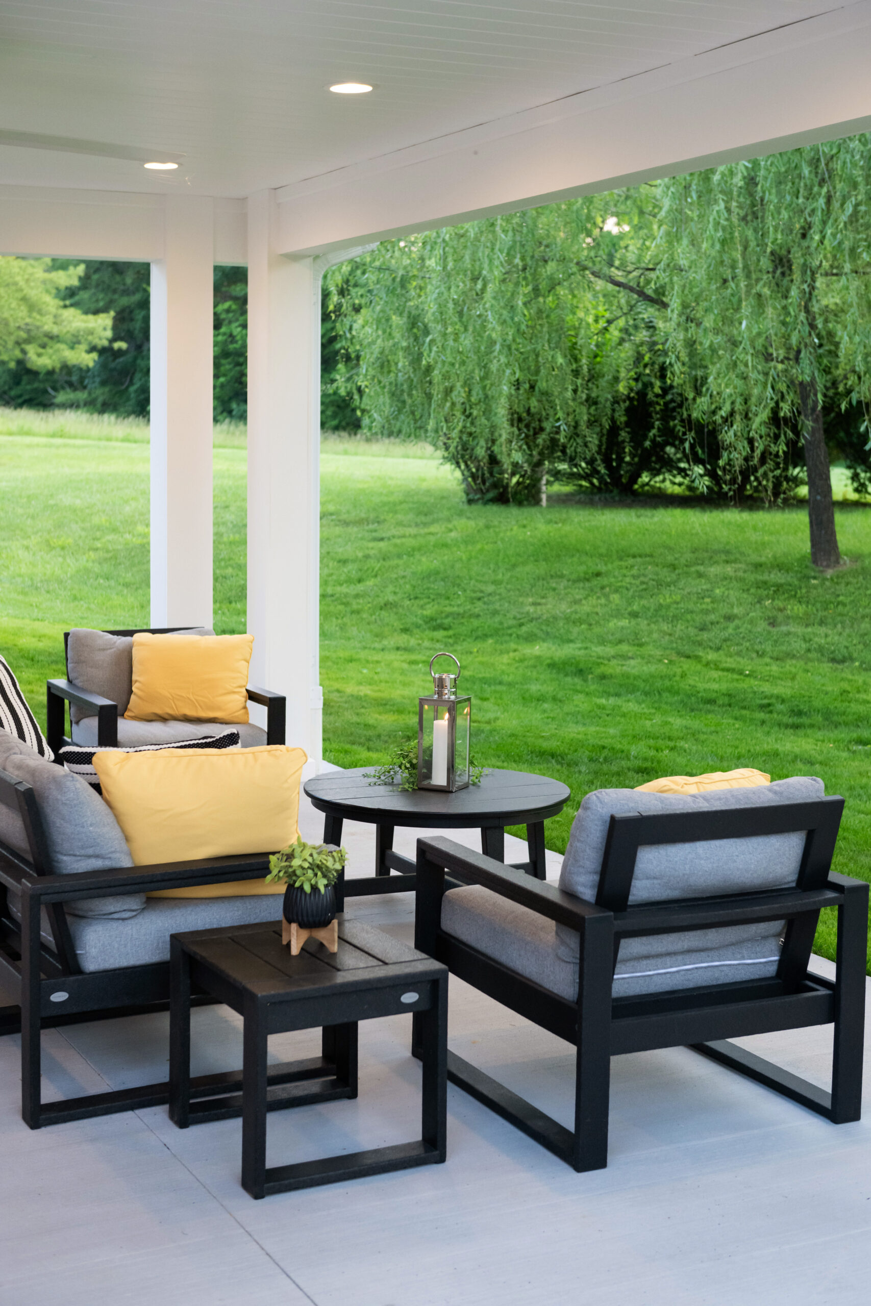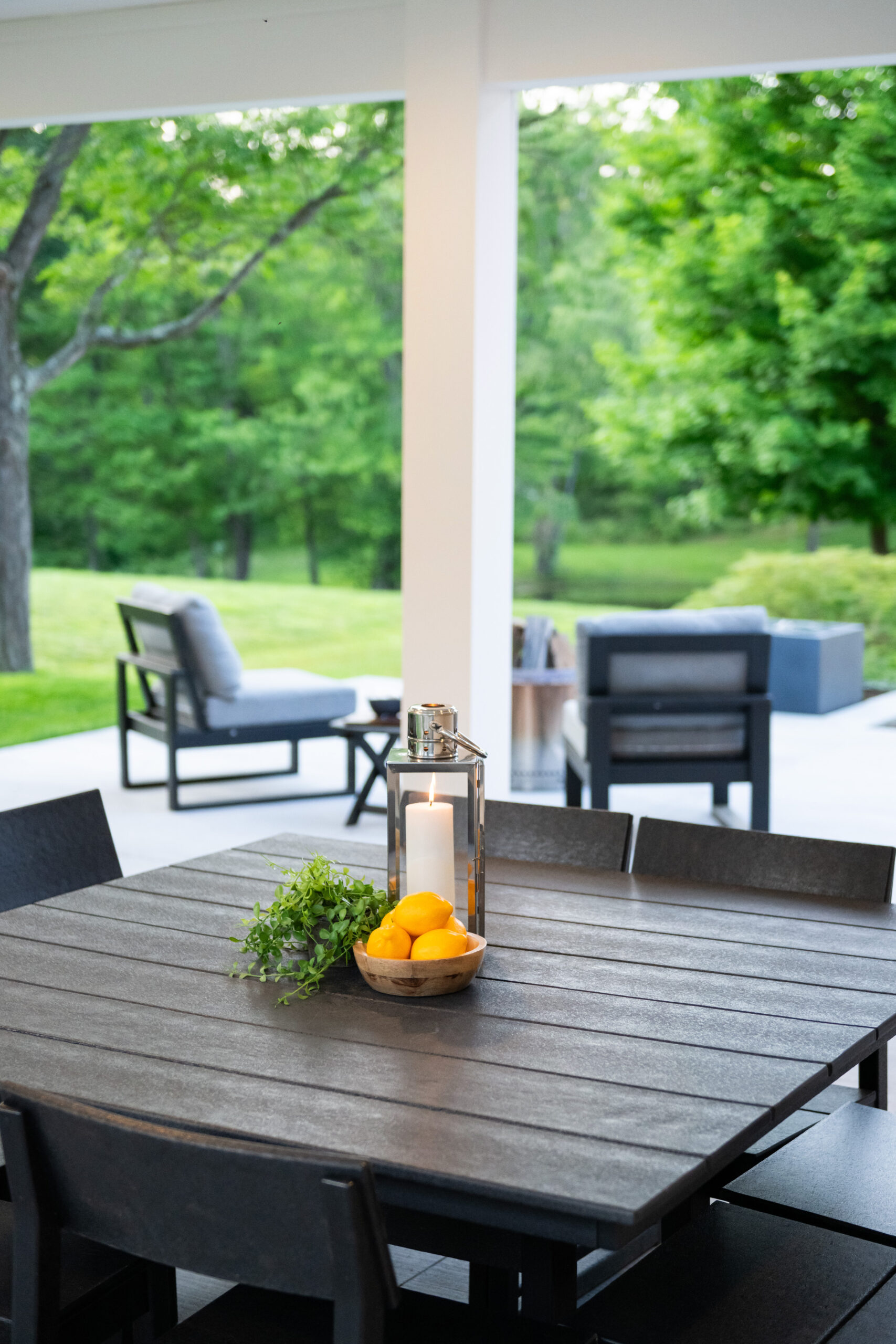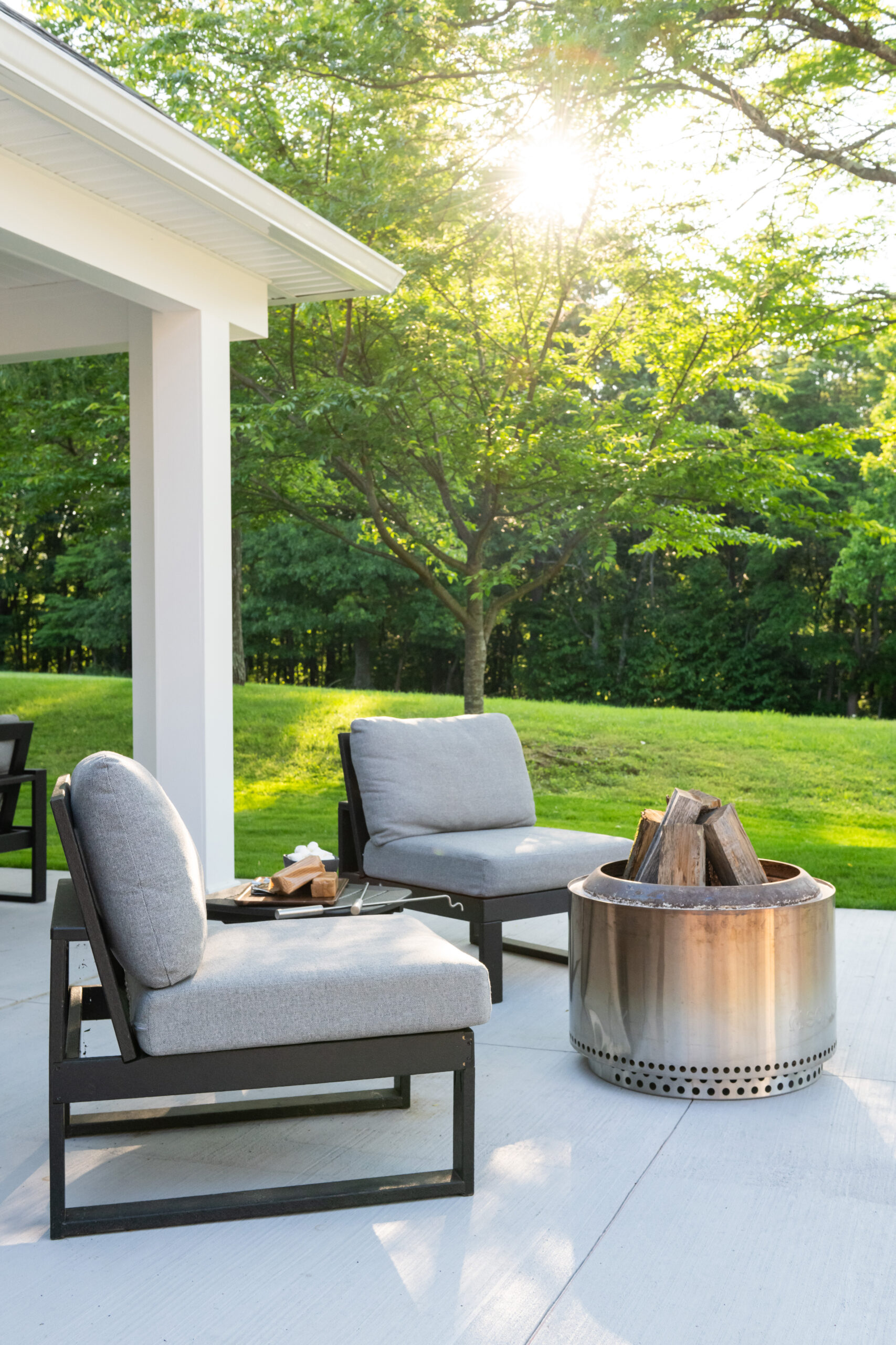 In Keedysville, MD, this hillside transformation marries West Coast modernism with East Coast tradition, creating a sophisticated retreat for empty-nesters that expands gracefully when family returns. Streamlined concrete patios replace dated pavers, while stucco walls with pre-cast concrete caps complement the home’s distinctive brick. Rich Ipe wood accents on deck skirting, spiral stair treads, and the outdoor shower add warmth against the clean backdrop. The multi-level design capitalizes on rolling hill views while creating natural zones – from quiet mornings in the hot tub (where even the local wildlife feels welcome) to family dinners on the patio to intimate evenings around the fire. Pre-cast concrete elements unify the varied materials into one cohesive vision. This is outdoor living that adapts to life’s changing rhythms, offering both serene simplicity and generous space for when children and grandchildren fill the hillside with laughter once more.